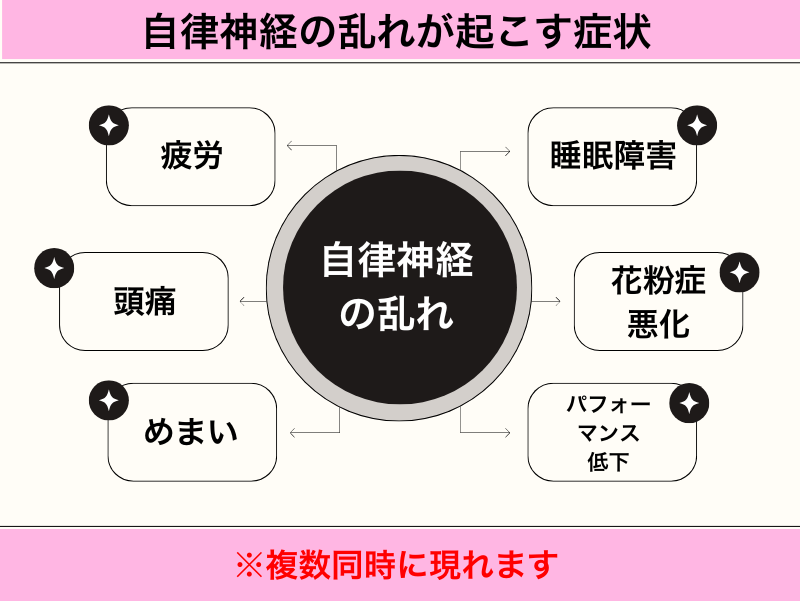 などの症状が重なると、体の回復力が低下し、自律神経のバランスが崩れやすくなります。